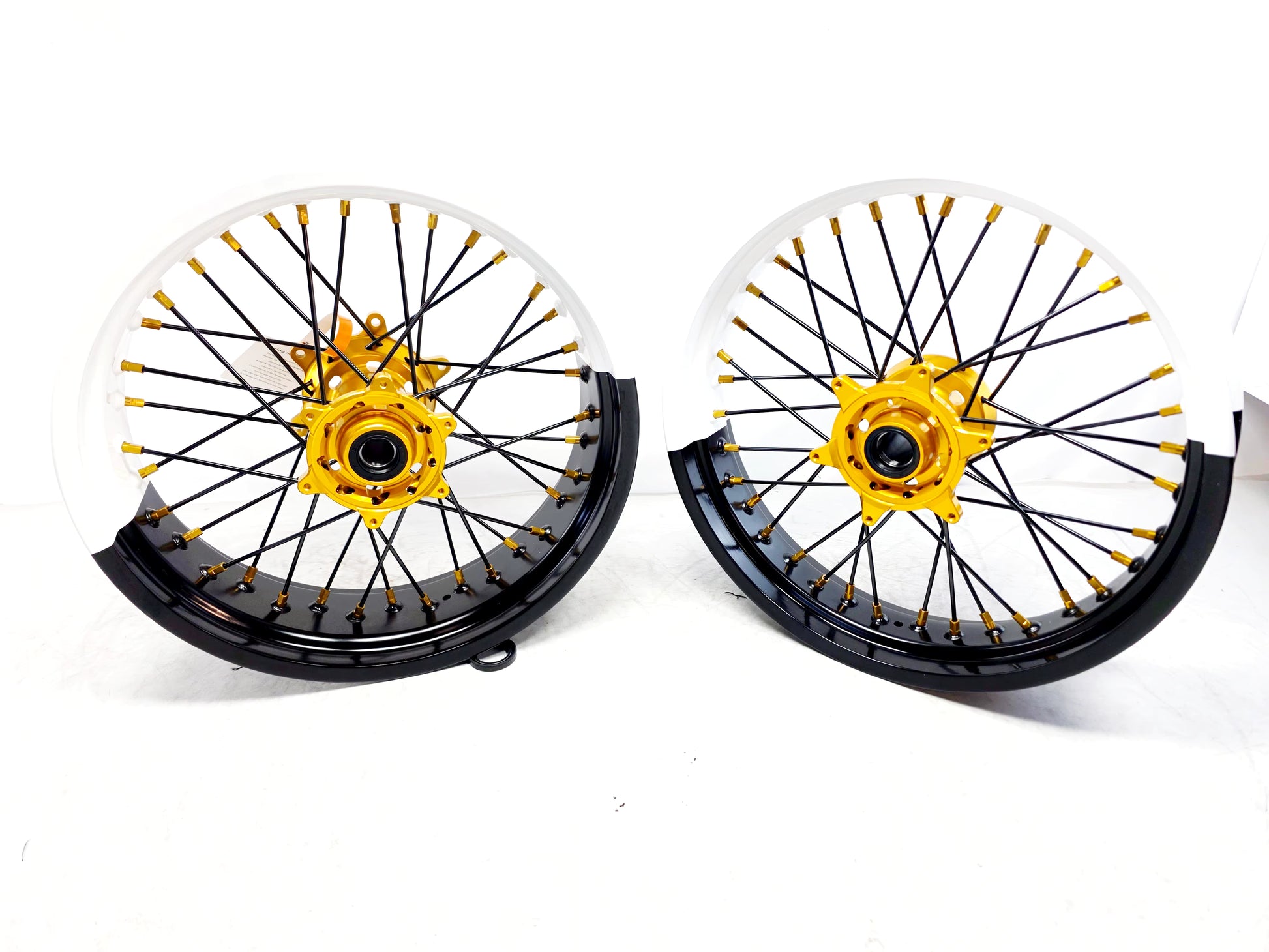 Få dina supermotard fälgar exakt så som du vill ha dom med SUPERMOTO M1 CUSTOM du kan välja dom färger du vill på nav, fälgbana och nippels du kan även välja att få en 2 färgad fälgbana!